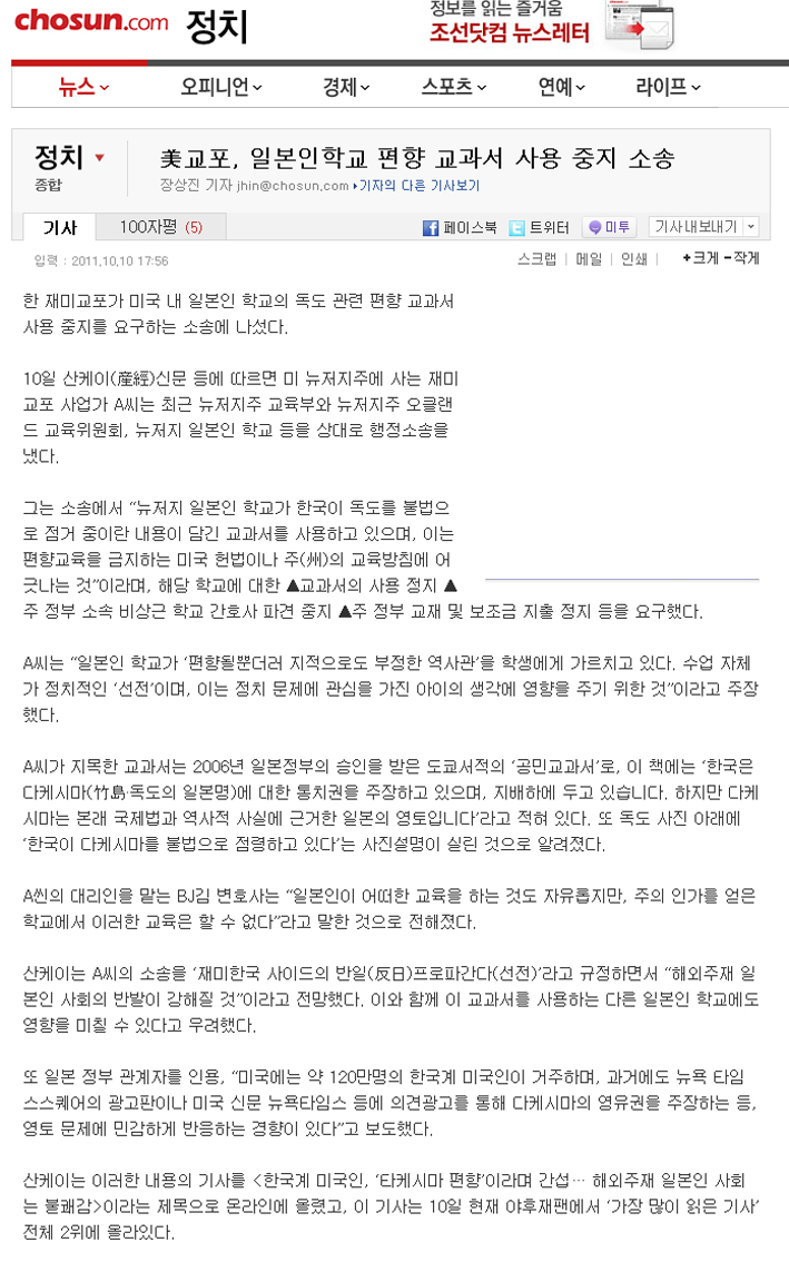 [Chosun.com] 미 교포, 일본인 학교 편향 교과서 사용중지 소송 October 11, 2011October 11, 2011 Legal News by admin Previous Post Next Post