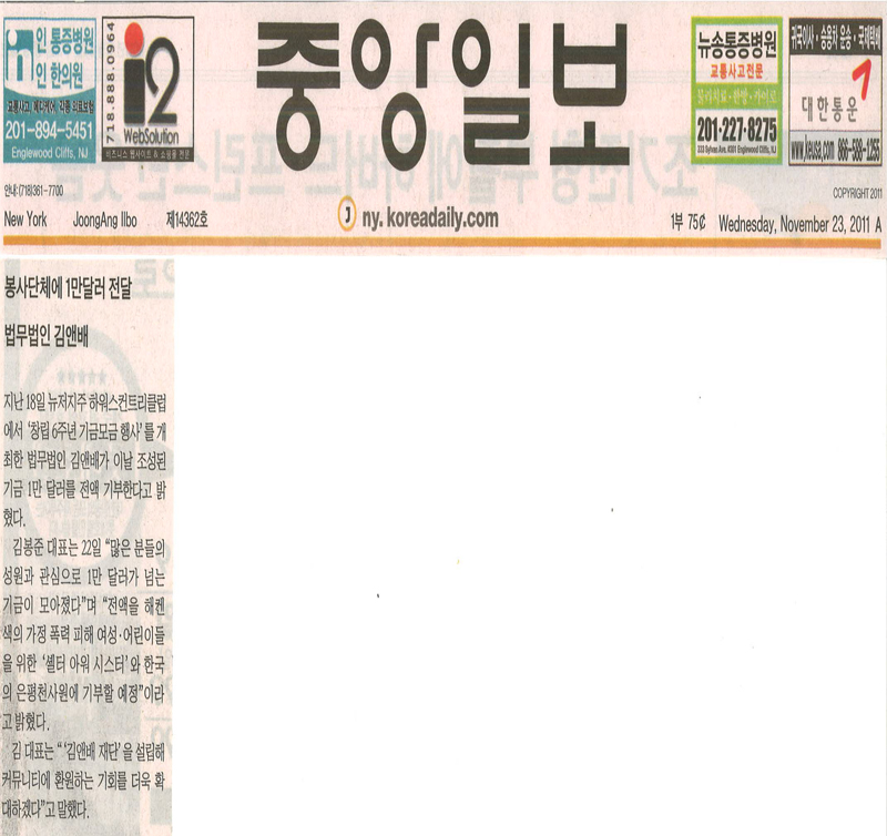 [The Korea Daily] 봉사단체에 1만달러 전달 법무법인 김&배 November 23, 2011November 29, 2011 Legal News by admin Previous Post Next Post
