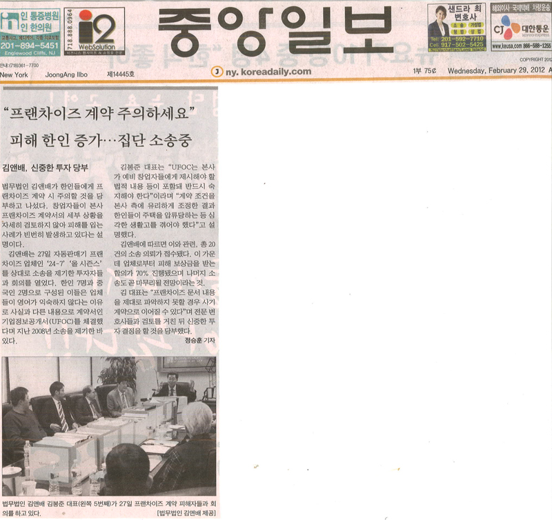 [Koreadaily] 프랜차이즈 계약 주의하세요 February 29, 2012February 29, 2012 Legal News by admin Previous Post Next Post