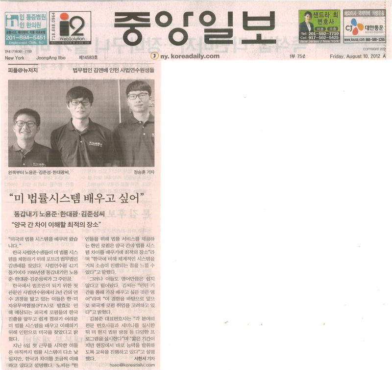 [New York Koreadaily] 미 법률시스템 배우고 싶어 August 14, 2012April 10, 2017 Legal News by admin Previous Post Next Post
