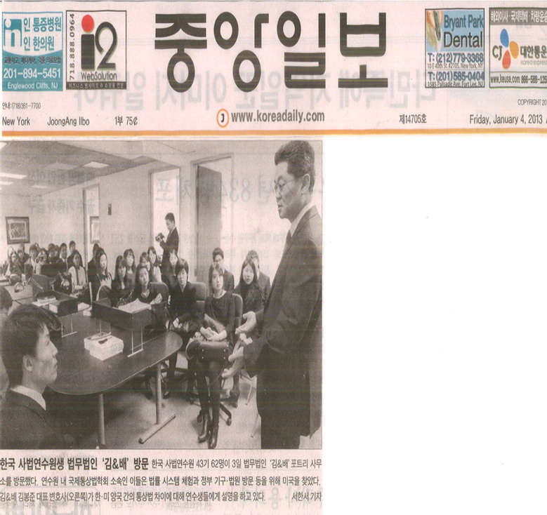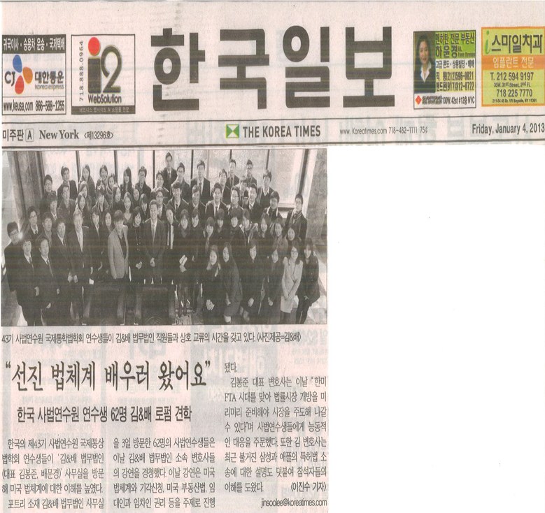 [Newspaper] 선진 법체계 배우러 왔어요 January 8, 2013January 8, 2013 Kim & Bae News by admin Previous Post Next Post