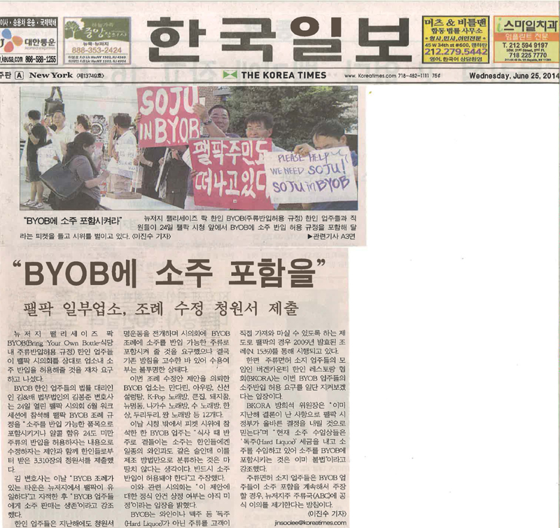 [The Korea Times] “BYOB에 소주 포함을” June 26, 2014June 26, 2014 Kim & Bae News by admin Previous Post Next Post